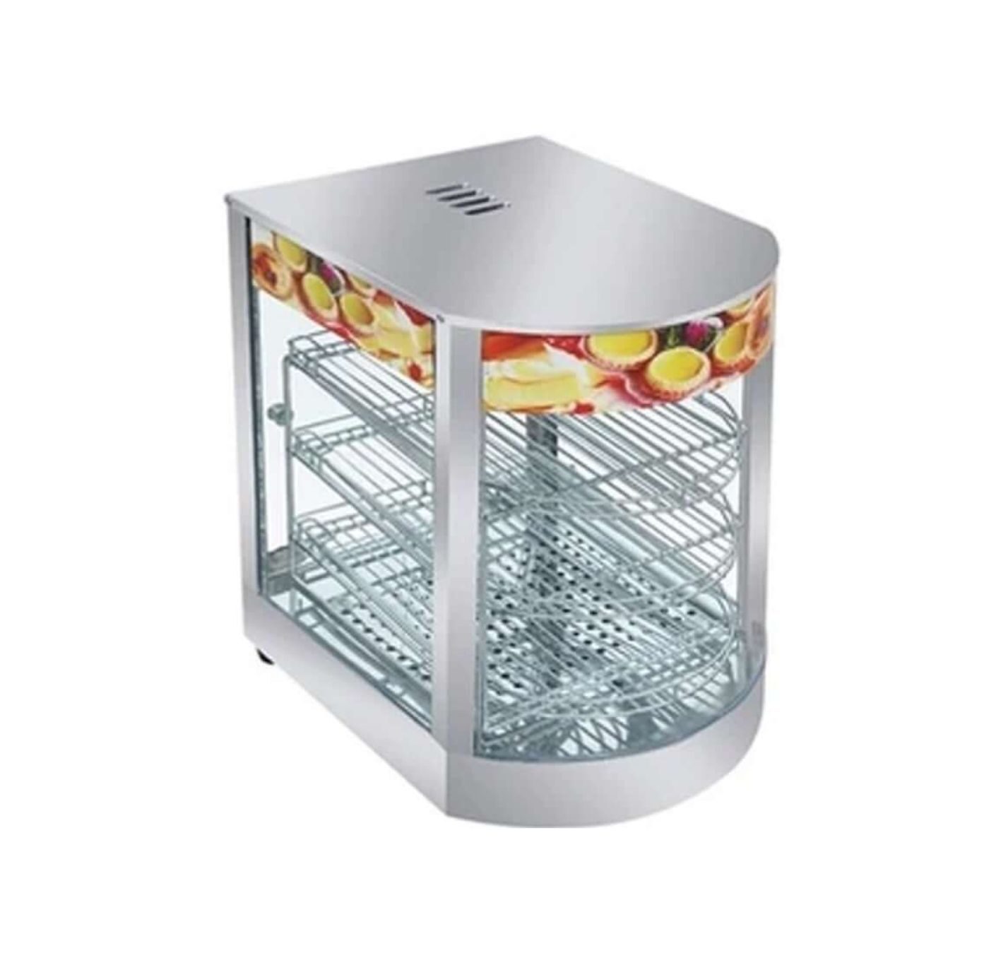 Máquina de estructura robusta con vidrios curvos templados que mantiene el calor y humedad para la conservación óptima de los alimentos, Luz interior Y Depósitos de agua para la humedad Indicador de temperatura a la vista del público.